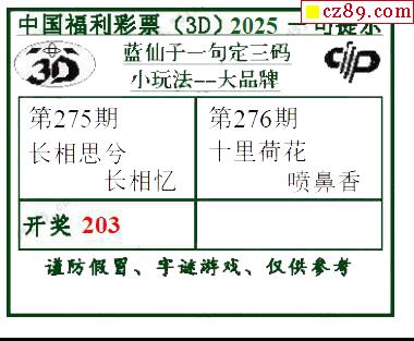 首页 > 福彩3D图谜 > 2025276蓝仙子一句定三码